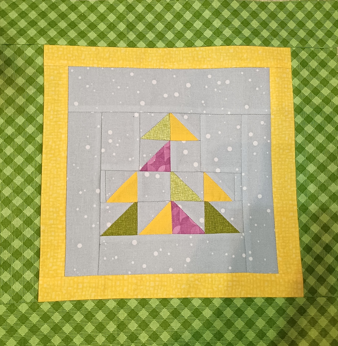 Что делать с лоскутками? Куда использовать остатки? Помните блок с сердечком ранее? В зависимости от количества остатков можно шить разные блоки. У меня - елочка🌲 Как раз в тему новогодних праздников🎉❄️✨️