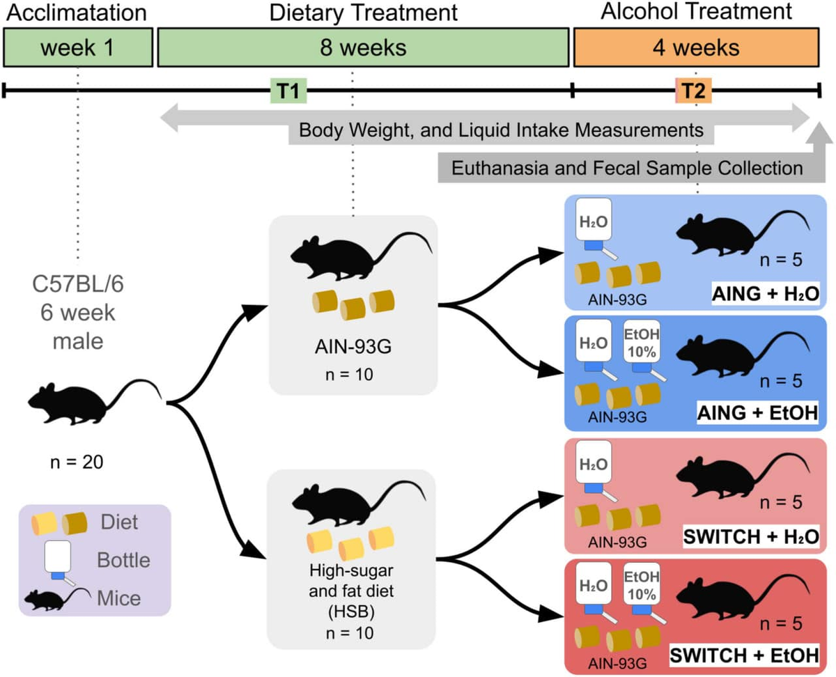 Учёные наблюдали за лабораторными мышами, часть из которых длительное время получала рацион с высоким содержанием насыщенных жиров и простых углеводов — типичный «западный» рацион. Затем этих животных перевели на сбалансированное стандартное питание, идентичное тому, что получала контрольная группа на протяжении всего эксперимента.