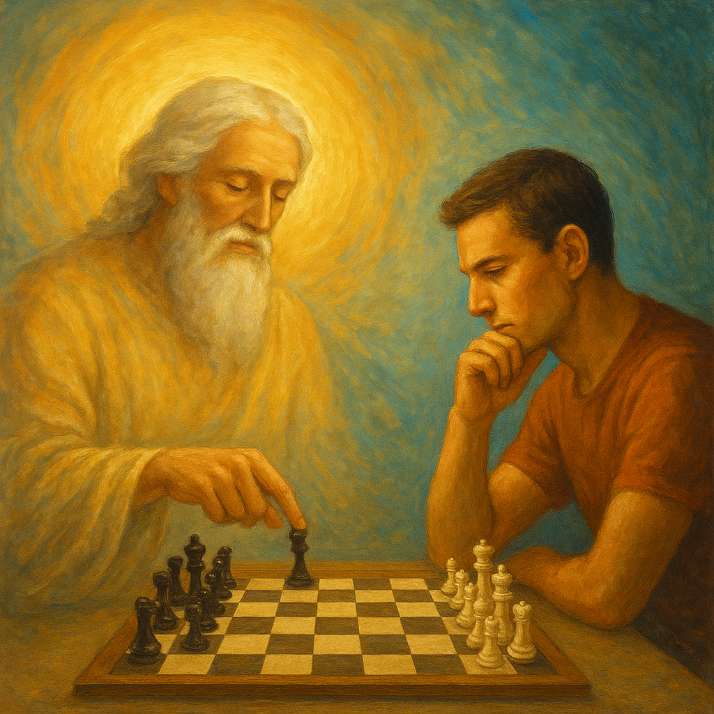 Когда мы перестаём воспринимать жизнь как череду случайных событий, и начинаем видеть в ней игру Бога — всё меняется. Исчезает ощущение борьбы, напряжения и постоянной нужды что-то контролировать. Мы начинаем видеть смысл даже там, где прежде нам казалось, что вокруг хаос. Эта игра — не про победы и поражения. В ней нет проигравших, ведь каждый опыт, каким бы он ни был, служит пробуждению. Иногда Бог играет через радость, иногда через боль, но суть одна — всё ведёт к осознанию Себя. Пока человек отождествлён с фигурой игрока, он боится перемен. Он пытается удержать привычное, как будто исход зависит от его усилий. Но стоит увидеть, что сам игрок — это тоже часть игры, которая создана той же игрой, — как напряжение растворяется. Отдаться — не значит бездействовать. Это значит довериться потоку, позволить жизни играть через тебя. В этом состоянии исчезает внутренний страх перед переменами: ведь если Бог играет, значит, всё происходит в совершенстве, даже если ум пока этого не понимает