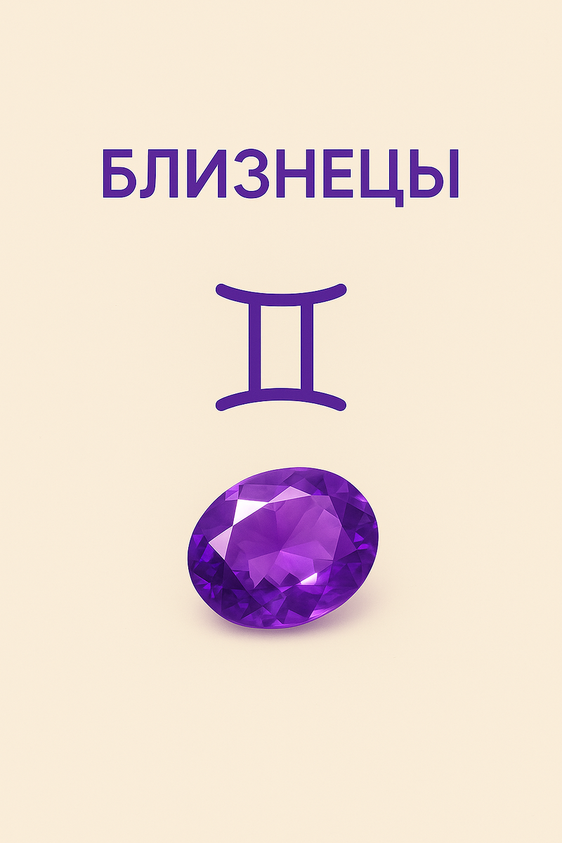 Близнецы носят в себе два полюса — логический и эмоциональный. Они постоянно ищут баланс между тем, что чувствуют, и тем, что думают. Аметист помогает им соединить эти потоки, превратить внутренний диалог в ясное звучание. Когда его энергия входит в поле Близнецов, мысли перестают метаться, а слова начинают обретать вес. Воздух становится не хаосом, а дыханием.
