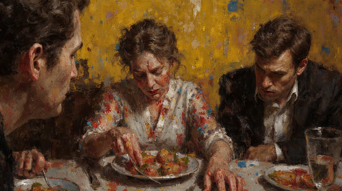 Наталья замерла с вилкой в руке. Она посмотрела на мужа, потом на котлеты, которые готовила два часа.
