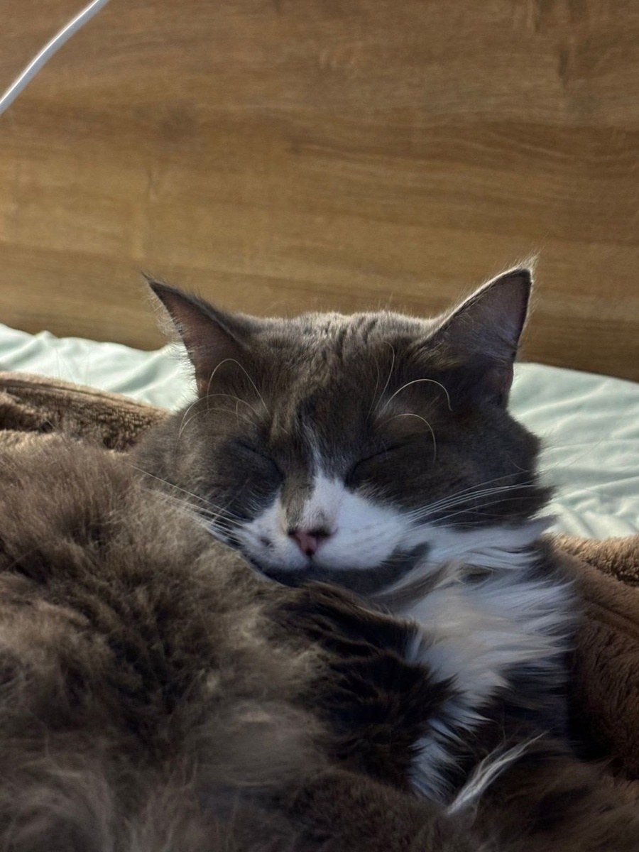 Добрый день! Сегодня ровно год как мы забрали Дымочку из вашего приюта. Спасибо Вам большое за такую прекрасную кошечку! Мы прошли с ней через многие препятствия, но сейчас мы видим как она изменилась. Дымочка оказалась очень игривым ребенком, бесится с мышками и мячиками, играет с Лёвой и даже дается на ручки. Спит вместе с нами и каждое утро требует к себе внимание мяукая! Мы конечно не ожидали, что Дымочка будет такая разговорчивая. Сейчас отдыхает в своём домике. Спасибо большое Вашему приюту, что подарили нам такую чудесную кошечку!