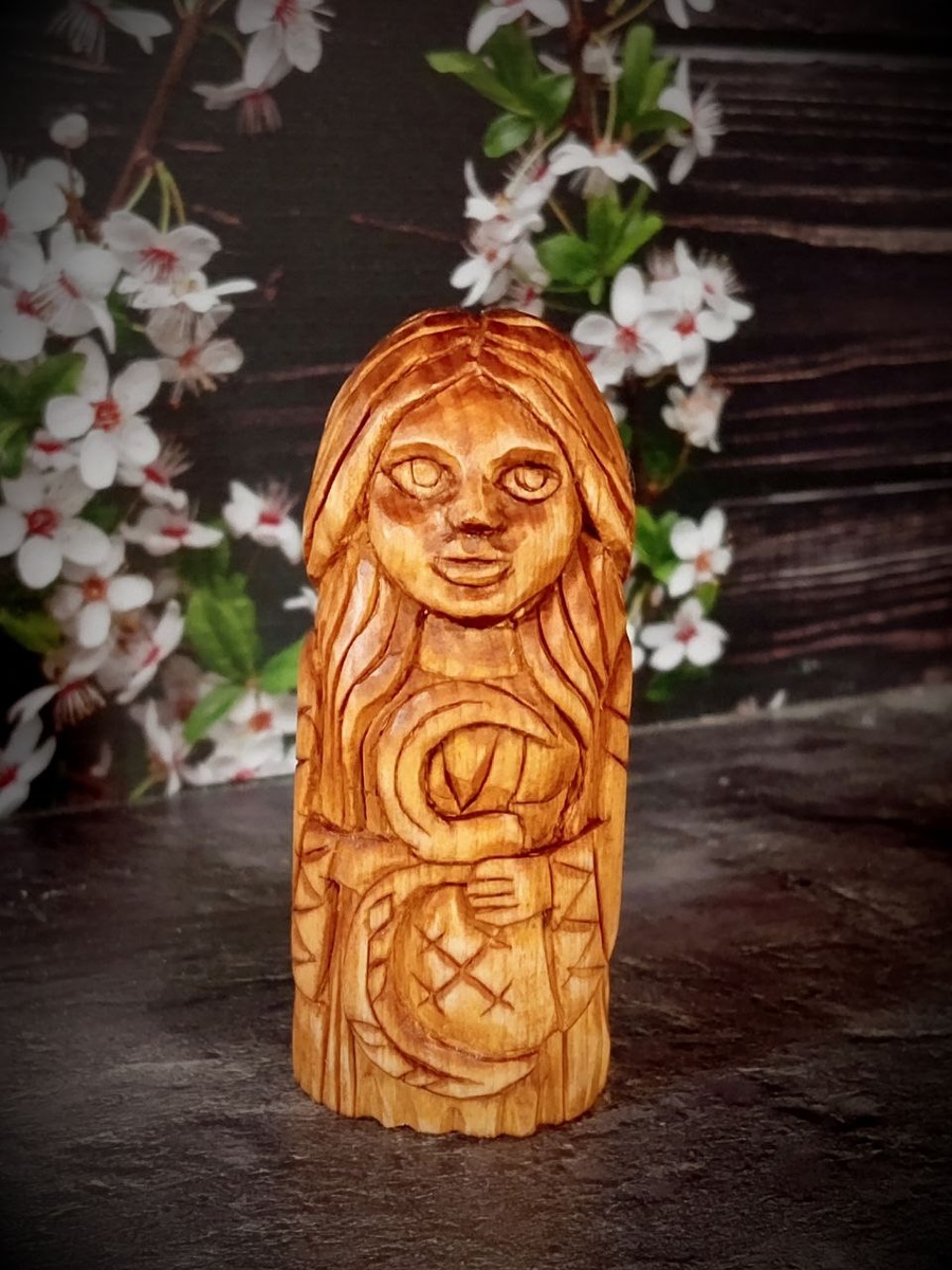 Кумир Мары (Марены) — завершение циклов и начало нового 🌙 Маленькая, но мощная работа! Кумир Богини Зимы и Смерти высотой 10 см, созданный на заказ. В её образе — вся глубина сакральной символики: ⚰️Серп — завершение жизненных циклов 🌙Месяц — связь с потусторонним миром ✢Символ-крест — переход между мирами Мара не просто завершает, но и даёт начало новому. Этот кумир поможет принять окончания, отпустить старое и найти силы для нового пути. Покрыта натуральной морилкой и льняным маслом. Могу повторить под заказ! Доставка:Почта России, Ozon #РезьбаПоДереву #Мара #Марена #СлавянскаяБогиня #Кумир #Оберег #Vereya_Wood
