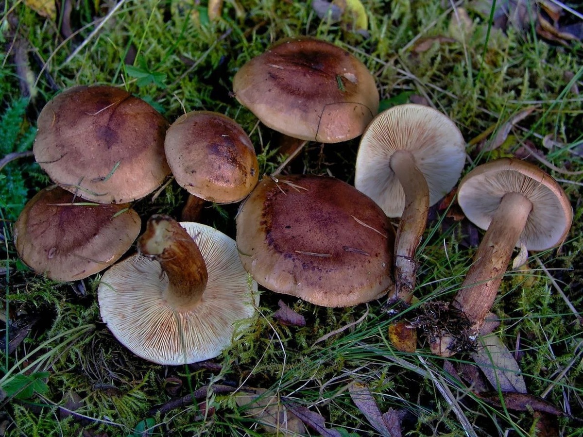 Рядовка пятнистая, или крапчатая, или волнисто-ножковая А вот ещё один вид рядовок, примерно совпадающий по сезону с рядовкой чешуйчатой (сентябрь–октябрь), однако, к сожалению, ядовитый. От последней отличается отсутствием чешуек на шляпке → блестящей поверхностью шляпки, неправильной её формой, в т.ч. продавленностью, и цветом, более отдающим в красноту. Также ножка у многих экземпляров не прямая, а извилистая. Ещё гриб имеет сходство с рядовкой тополёвой, у которой шляпка чаще отдаёт в охристые тона, но которую практически невозможно встретить в лесу, т.к. растёт она под тополями и только изредка под осинами. К счастью, яд в рядовках пятнистых несильный, вызывает лишь расстройство ЖКТ. Но желательно, конечно, со съедобными видами их не путать.