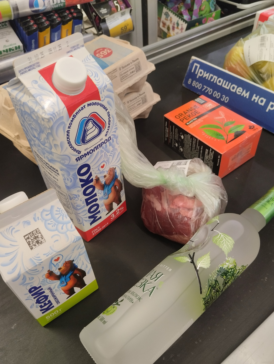 Привет, друзья! Вчера была у меня рабочая суббота, сегодня первый из трёх выходных дней, ура! По случаю таких затяжных выходных ДМ приготовил для нас ужин. Продукты мы заранее купили в "Ленте". И заодно взяли "Белый налив", очень рекомендую. Берёзок различных полно в продаже, но вот именно этот сорт есть только в "Ленте", пьется легко и аромат яблок чудесный, на утро голова как стекло, никогда никаких последствий не бывает, мы с ДМ если и покупаем "родимую", то предпочтение отдаем только этой марке на любые праздники и поводы. Она ещё и не всегда в продаже бывает, кстати. Еше часть продуктов в "Магните" вчера купили на выходные, много не набираем, дефицита нет сейчас, что бы запасы создавать . Шпроты этой марки второй раз покупаю, они реально вкусные. Надо на Новый год их прикупить, пока есть в продаже. Вот такой у нас вчера был ужин. Готовил и накрывал лично повар, ДМ. Суп выходного дня с говядиной и булгуром , варил в горшочке на печке. Остальное наши запасы и покупки из м