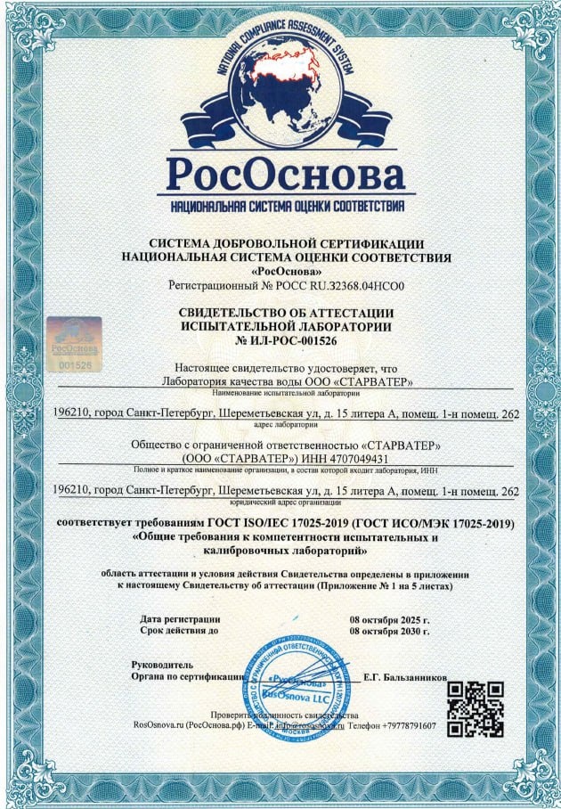 💧 Лаборатория СТАРВАТЕР официально аттестована!