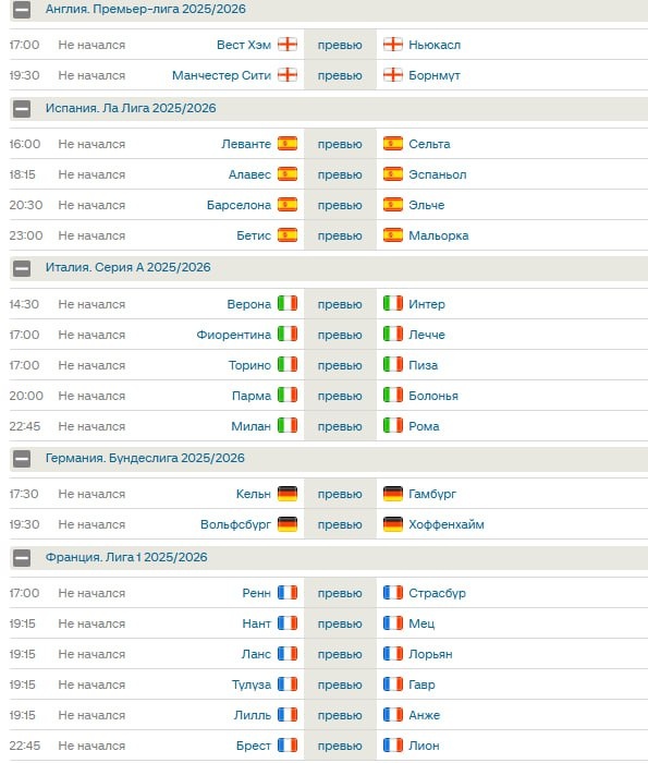 Матчи на воскресенье