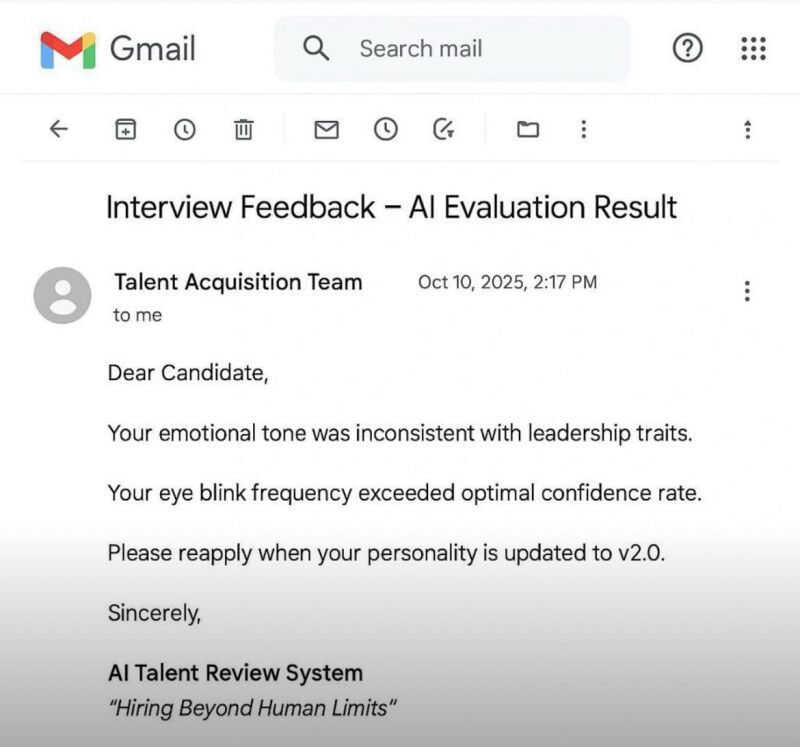 Человеку отказали в найме, т.к. ИИ посчитал, что во время собеседования соискатель слишком часто моргал. Глазками моргал... Волновался видать :) В век ИИ найм, конечно же, превращается в мясорубку бездушную... Русский ИТ бизнес