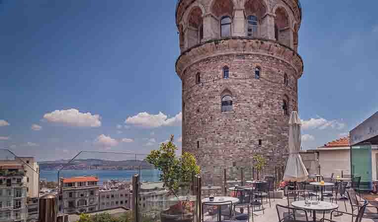 Перед поездкой в Стамбул я заказала индивидуальную экскурсию «Покорить топовые террасы Стамбула». Программа обещала быть насыщенной, ведь секреты мест держались в тайне, что добавляло интриги. Поскольку я была в Стамбуле впервые, меня интересовало всё самое-самое. Экскурсия превзошла мои ожидания! Это был идеальный микс красоты, вкуса и ярких впечатлений. Одно из топовых мест – терраса ресторана Firuzende Galata, расположенного на крыше отеля Anemon Galata. Отель находится совсем рядом с Галатской башней, буквально в 10 метрах, возле точки продаж сувениров в виде ретро-трамвайчика. Вид с террасы оказался потрясающим! Казалось, до Галатской башни можно дотянуться рукой! Стеклянное ограждение открывало панораму на Старый город, а часть террасы была накрыта стеклянной крышей. Напротив, на закрытой террасе, открывался вид на Босфор – я заглянула туда, чтобы сделать фото. Мы были в ресторане около 17.00 часов. Народ присутствовал, но и свободных мест было достаточно. Играла легкая современ