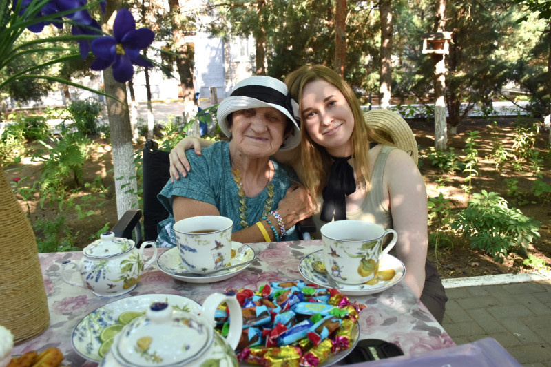 Все истории «внуков по переписке» безоговорочно прекрасны, потому что они всегда про заботу, любовь, тепло, но когда нам присылают фотографии с личных встреч со своими некогда незнакомыми «бабушками» и «дедушками», а теперь близкими и почти родными людьми, – это для нас особенная радость. «Да, приезжала ко мне «внучка»! Мы с ней погуляли, чаю попили, поговорили, встреча наша была теплая, яркая, веселая. Мы с Настей много говорили о жизни. Если получится, то мы встретимся еще!» – поделилась своими впечатлениями Татьяна Михайловна из Калачевского ПНИ Волгоградской области. Насте 26 лет, работает учителем, пишет художественную прозу и стихи, рисует, фотографирует, любит читать, и проехала она ради Татьяны Михайловны из Подмосковья в поселок Пятиморск почти 1000 км – путь не близкий, но стоил того. «О программе "Внуки по переписке" я узнала случайно, когда принимала собеседование по русскому языку у девятых классов. Один из текстов для пересказа был как раз о фонде "Старость в радость" с у