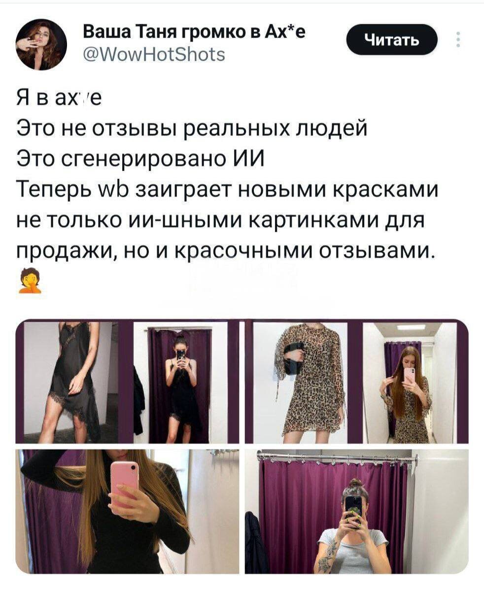 Маркетплейсы заполонили фейковые ИИ-отзывы — некоторые настолько реалистичные, что их практические нельзя отличить от настоящих. Самое главное: одежда на всех выглядит естественно, даже если в реальной жизни она совсем другая. Ты знаешь, кого об этом предупредить. 👉🏻Новости №1 в Ростове 💌Прислать новость/фото Ростов Папа теперь в Ⓜ️🅰️❌