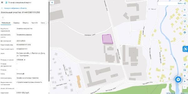Название: Земельный участок, государственная собственность на который не разграничена, из земель населенных пунктов, с кадастровым номером 61:44:0081111:250, расположенный по адресу: Ростовская обл., г. Ростов-на-Дону, ул. Тракторная, общей площадью 1834 кв.м. Канал: Госземля Ростовская область Область: обл Ростовская Район: г.о. город Ростов-на-Дону Населенный пункт: г Ростов-на-Дону, ул Тракторная Локация: Смотреть на карте ВРИ: Иной вид Кадастровый номер: 61:44:0081111:250 Кадастровая стоимость: - Вид сделки: Аренда Площадь: 1834 м² Начальная цена: 260673.00 руб. Дата завершения: 20.11.2025 Подробнее: ГИС ТОРГИ #госземля #земляотгосударства #земля #земельныйучасток #земельныеторги #торги #аукцион #арендаземли #аренда #ростовскаяобласть