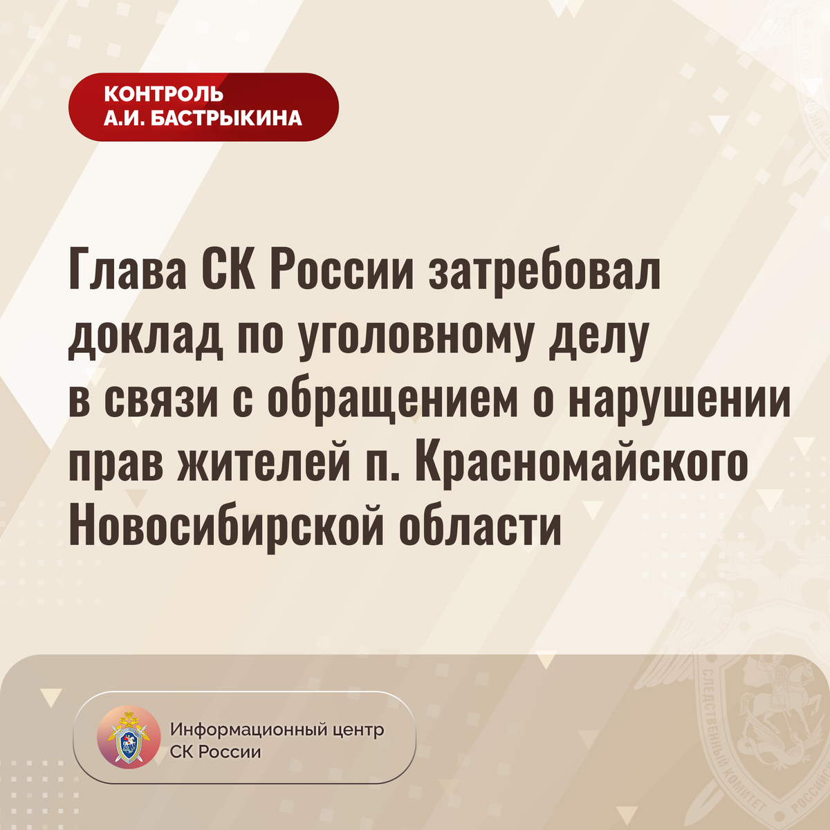 #СледственныйКомитет #СКРоссии #СКР #ИЦСКР #Информационныйцентр #АлександрБастрыкин #ПредседательСКР #КонтрольПредседателяСКР #КомментарийКонтроль #НовосибирскаяОбласть