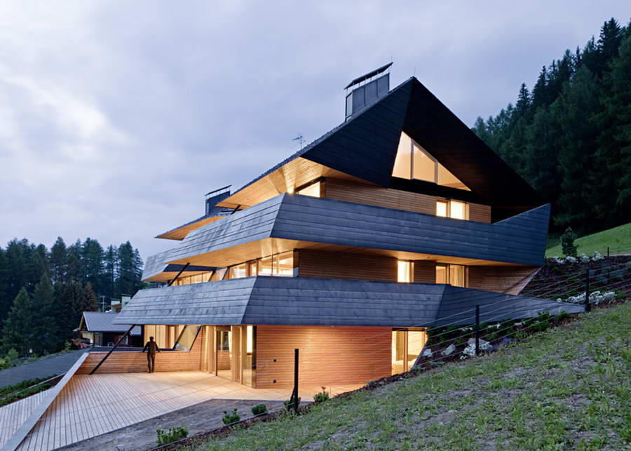 Друзья, по воскресеньям у нас частная архитектура Италии. Сегодня 5 совершенно разных домов - посмотрите! Архитектура Италии — это прежде всего традиции, современность и итальянский дизайн. В нашей коллекции итальянской частной архитектуры есть дома и квартиры самых разных стилей, стоимости и материалов, здесь есть новые объекты и старые, прошедшие вдумчивую реконструкцию, большие и маленькие. Часть 8. Предыдущая часть здесь. Этот небольшой дом для семьи из трёх человек стал одним из нескольких проектов, реализованных итальянскими архитекторами в пригороде Милана. Тема отношений между интерьером и экстерьером, поиск пространственной матрицы и способов её структурирования являются основными творческими посылами проекта. Эффектная двухуровневая ломаная кровля стала главный композиционным и типологическим элементом, организуя и внешнюю форму, и внутреннее пространство, и промежуточные полуоткрытые патио. Гостиная двойной высоты соединена с лофт-студией и открывается во двор, который связа