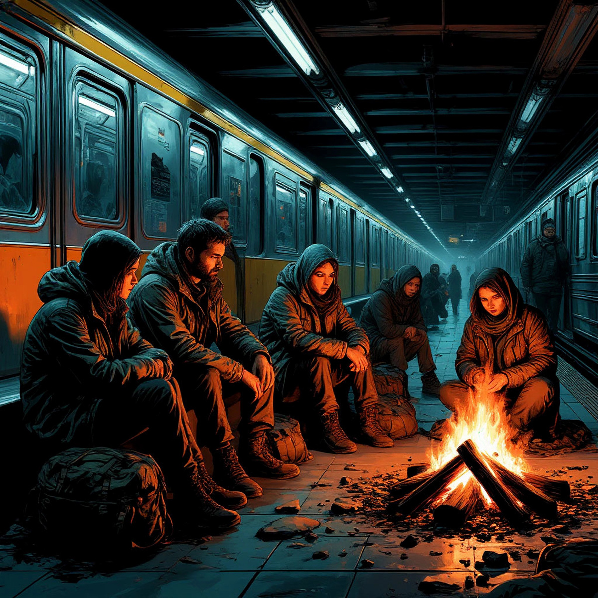 Голос прервался оглушительным ревом, словно где-то совсем рядом рухнула многотонная стальная конструкция. Потом - тишина. Дмитрий вырубил рацию. Слушать это было невыносимо. Каждое такое сообщение было похоронным звоном по тому миру, который он знал. Он шел еще с полчаса, когда впереди увидел слабый отсвет. Не аварийный фонарь, а колеблющийся, теплый свет огня. И услышал голоса. Не панические, а собранные, даже деловые. Осторожно подкравшись, он заглянул за поворот. В небольшом техническом помещении, где когда-то хранились рельсовые детали, расположилась группа людей. Их было человек десять. Среди них - двое военных в потрепанной форме, но с автоматами на груди. Несколько людей в гражданском, но с такими же одубевшими, решительными лицами. Они разложили карту на ящике, освещаемую двумя походными горелками. Рядом сидела женщина в белом халате, замотанном в грязь и кровь, и перевязывала руку подростку. Это был островок порядка в море хаоса. Дмитрий сделал шаг из тени.