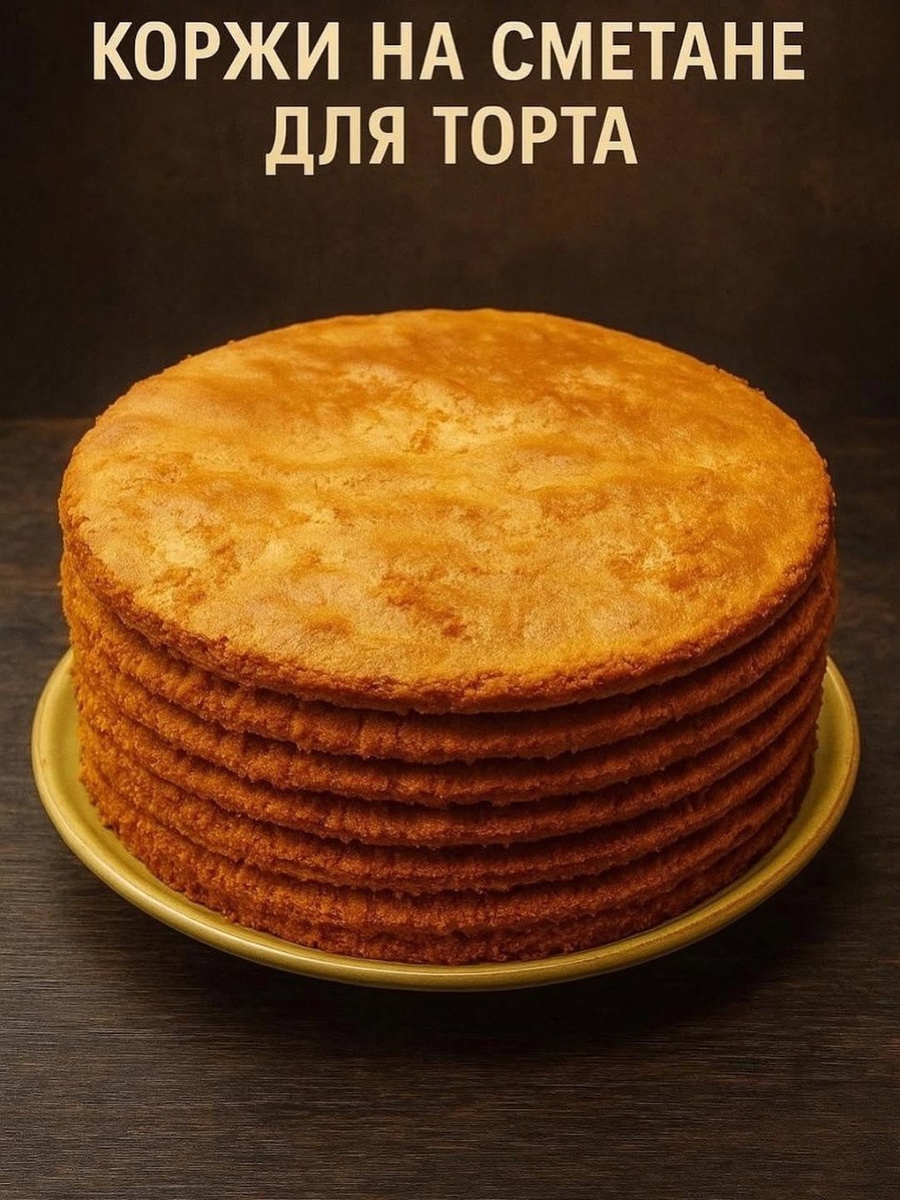 КОРЖИ НА СМЕТАНЕ ДЛЯ ТОРТА 🥮👌 ✅ИНГРЕДИЕНТЫ (на 8–10 коржей): Сметана 15–20% — 200 г Сода — 1 ч. л. с горкой Сахар — 180–200 г Мука — 400–450 г Ванилин — 1 пакетик 1. Выложите сметану в глубокую миску, добавьте соду и тщательно перемешайте. Оставьте на 3–4 минуты — появится пышная реакция. 2. Всыпьте сахар, перемешайте. 3. Просейте муку с ванилином в смесь за 2–3 приёма, замешивайте сначала ложкой, затем руками. Тесто получится плотным, но эластичным. 4. Выложите тесто на присыпанную мукой поверхность, слегка вымесите и разделите на 8–10 равных частей. 5. Каждый кусочек раскатайте в тонкий круг. Придайте форму с помощью тарелки, обрезки можно обжарить отдельно — они вкусные! 6. Выпекайте на сухой сковороде на минимальном огне: – первую сторону — под крышкой, – вторую — без крышки, около 30 секунд. 7. Готовые коржи мягкие и пышные. Остудите и собирайте торт с любимым кремом. *Можно выпекать и в духовке при 180–190°C, по 10–12 минут каждый корж (не забудьте проколоть вилкой).*