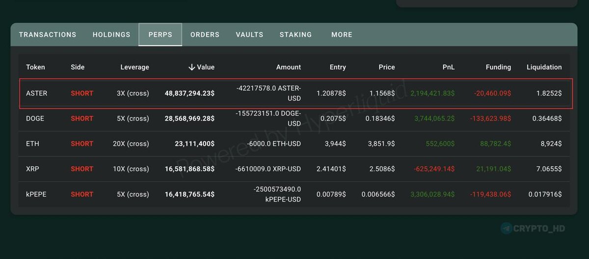 🤡 И сразу же кто-то вошел в гигантский SHORT в паре ASTER/USD на $50,000,000 (3x плечо).