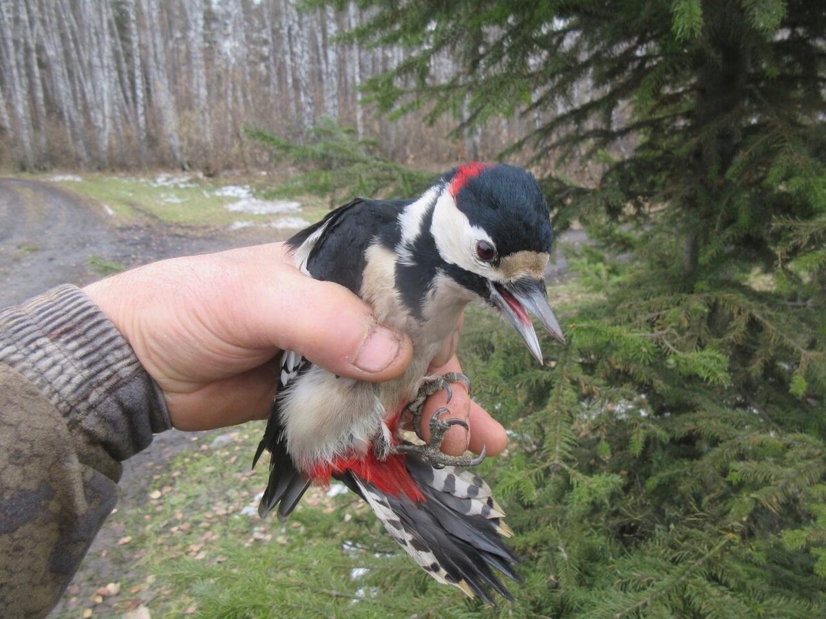 В Омской области инспектор спас дятла, запутавшегося в нитке
