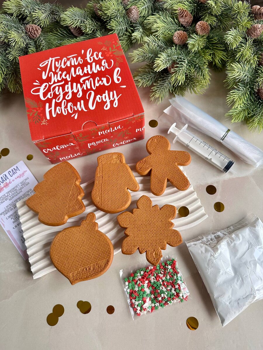 Новогодний набор для самостоятельно росписи пряников глазурью немного преобразился