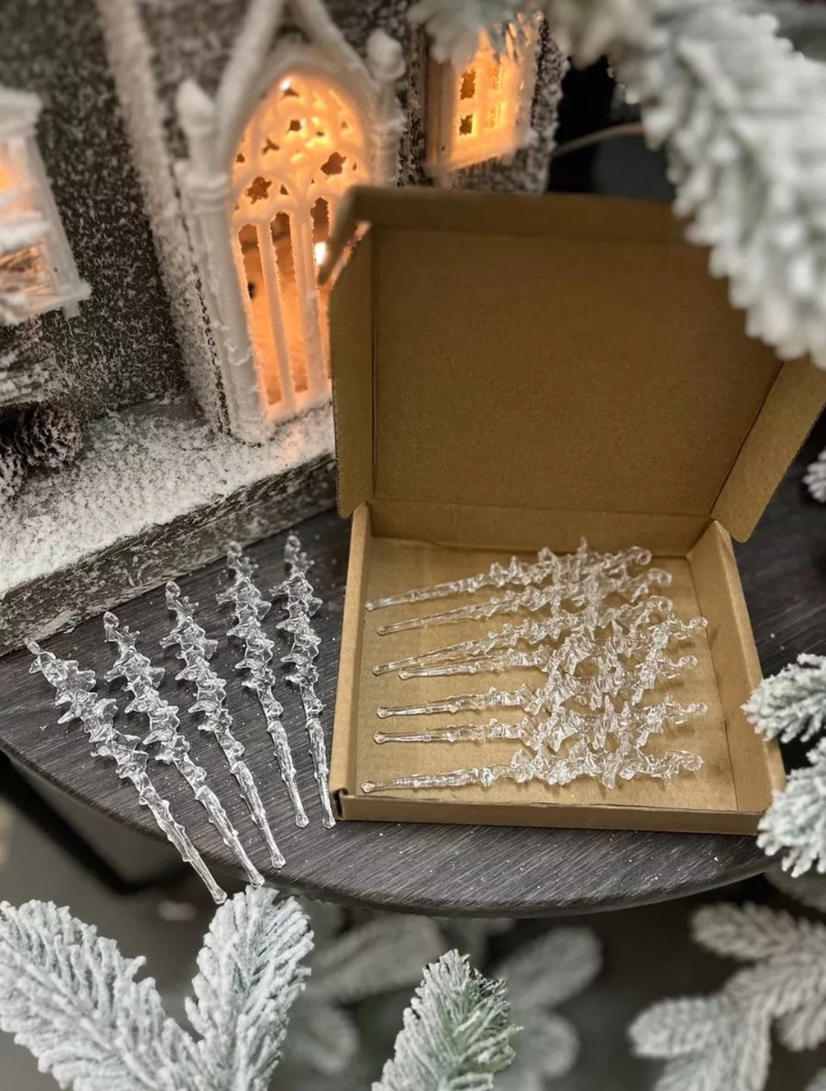 Эти сосульки добавляют елке элегантности и зимнего очарования. Они прекрасно сочетаются с другими украшениями, создавая целостную и стильную композицию, которая переносит в атмосферу заснеженного леса.