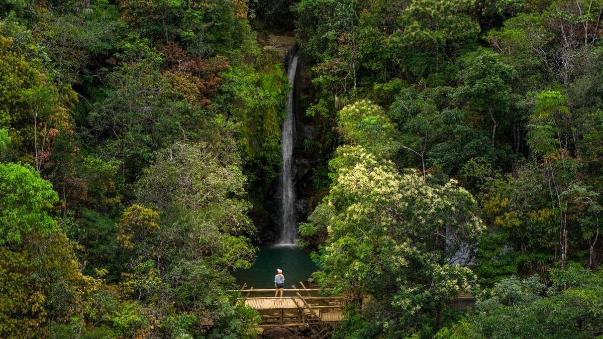 Мы немного выпали из online, потому что наше путешествие вошло в более сложную фазу. Но прежде чем рассказать о нём, давайте ещё немного об острове Флорес. А вернее - о его водопадах, потому что кроме них мы ничего и не видели там 😀 Но чтобы до них добраться, нам нужно было проехать 35 км. Казалось бы пустяк, хотя Google сразу сказал, что ехать час. По итогу первый раз мы ехали 2 часа 🙈 Во-первых, гонять в Индонезии не стоит. Движение тут попроще, чем на Бали, но ПДД тут только туристы-перводневки соблюдают 😀 Поэтому безопаснее всегда держать дистанцию и скорость не превышать 30-40 км/ч. Во-вторых - дорога в горы, с серпантином. В-третьих - мы попали под проливной дождь. В итоге, увидев водопады в непогоду, мы решили, что поедем еще, чтобы увидеть их во всей красе. Водопад Cunca Plias состоит из трёх ступеней, и если первые две красивы, но не «вау», то вот третья прям 🔥 Хоть вы не видите сам водопад, но вы сидите в купели с потрясающим видом на джунгли, а вода падает вниз на не