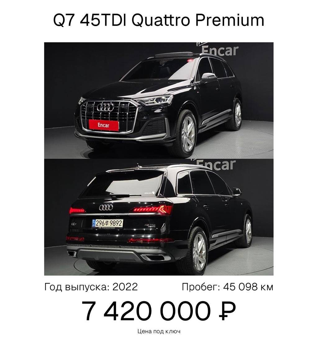 Audi Q7 45TDI Quattro Premium — сочетание мощности, комфорта и динамики на каждый день. Год выпуска: 2022 Пробег: 45 098 км Двигатель: 3.0 дизель, автомат Полный привод Цена под ключ во Владивостоке: 7 420 000😎 Элегантный кузов, просторный салон и полный привод делают Q7 уверенным на любой дороге. Мощный дизель обеспечивает плавный разгон, а премиум-отделка создаёт атмосферу, в которой хочется оставаться за рулём как можно дольше. Доступен под заказ