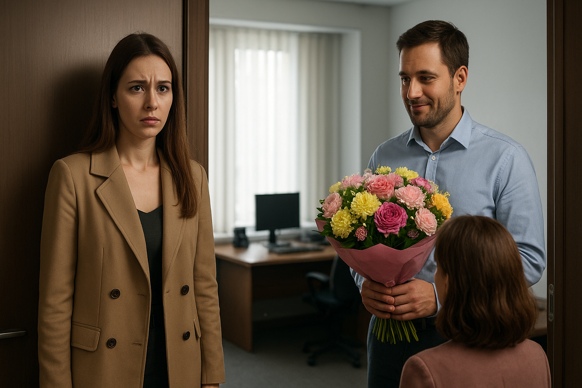 Не предупредив мужа, Евгения приехала к нему в командировку, чтобы сделать сюрприз. А увидев его в офисе, она замерла: муж стоял перед коллегами, смущенно улыбаясь и держа в руках огромный букет цветов… но это были цветы для другой женщины. Сердце Евгении сжалось, но она не издала ни звука.