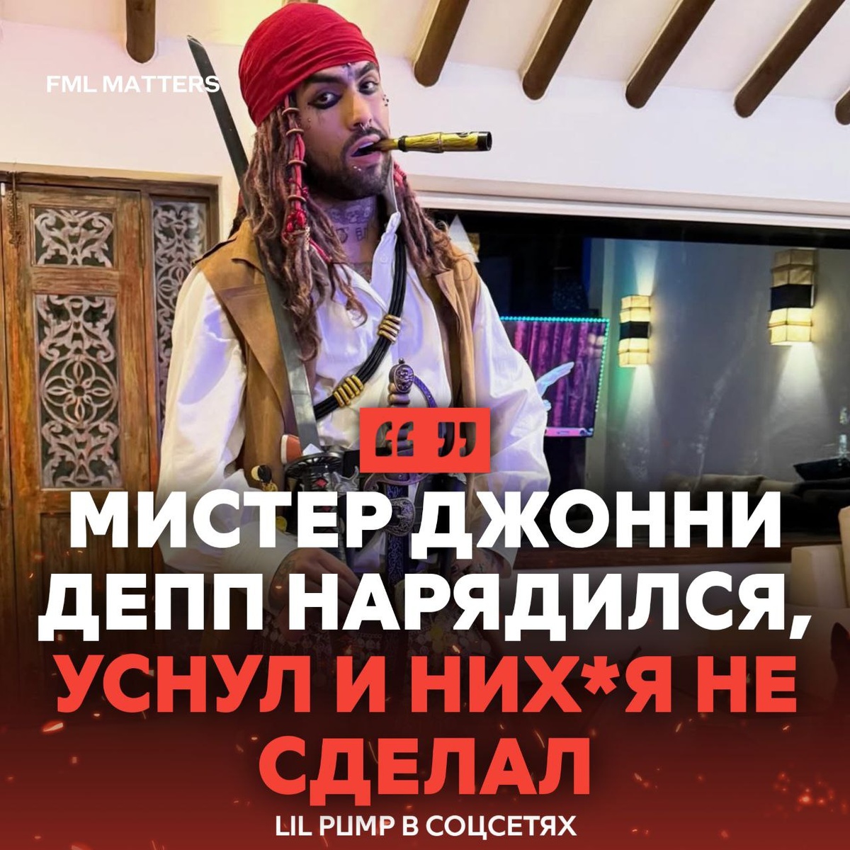 🏴☠️ LIL PUMP СТАЛ ДЖЕКОМ ВОРОБЬЕМ! Рэпер выбрал культовый образ Джонни Деппа — капитана Джека Воробья из «Пиратов Карибского моря». Как вам? ❤️🔥 / 👎 💀 FML MATTERS