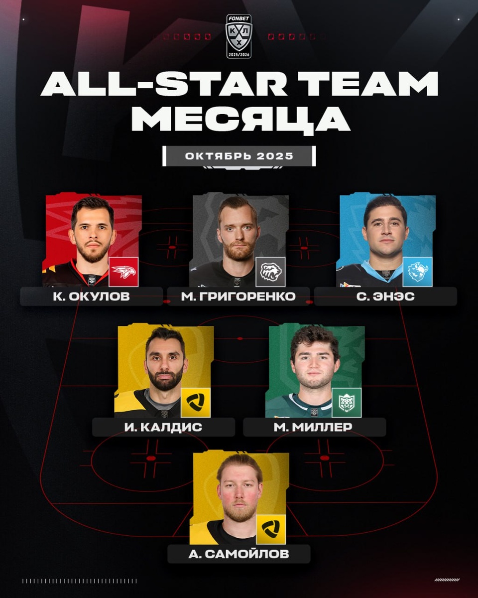 ⭐️ КХЛ представляет звездную команду и команду новичков месяца ⭐️