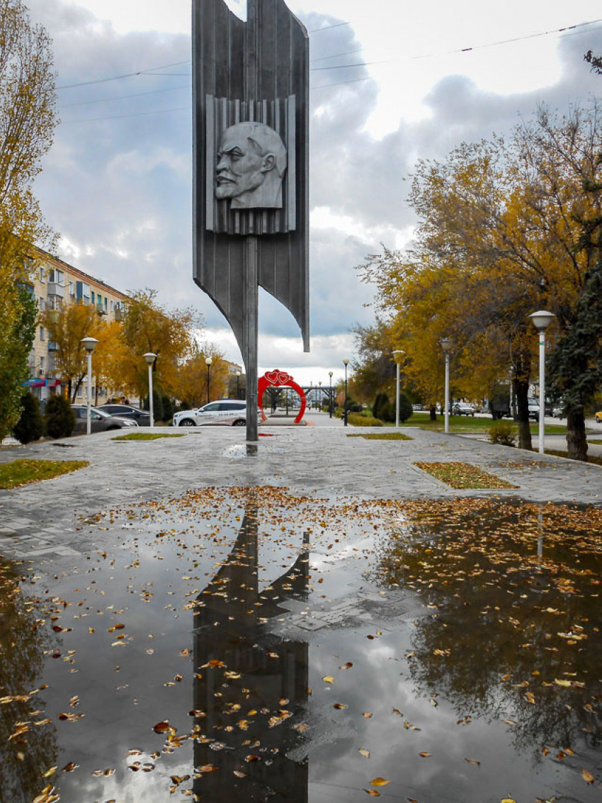 Повела на Аллею Любви, для них это связано со счастливыми воспоминаниями молодости. Но шагать пришлось вдоль лужи у стелы, хотя дождя сегодня нет.
