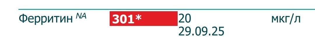Ферритин стал 301 через 2 недели (сдавала вчера, срок в две недели для контроля посоветовал врач) после Феринжекта + 1 цикл уже прошёл (железо принимала 5 дней).