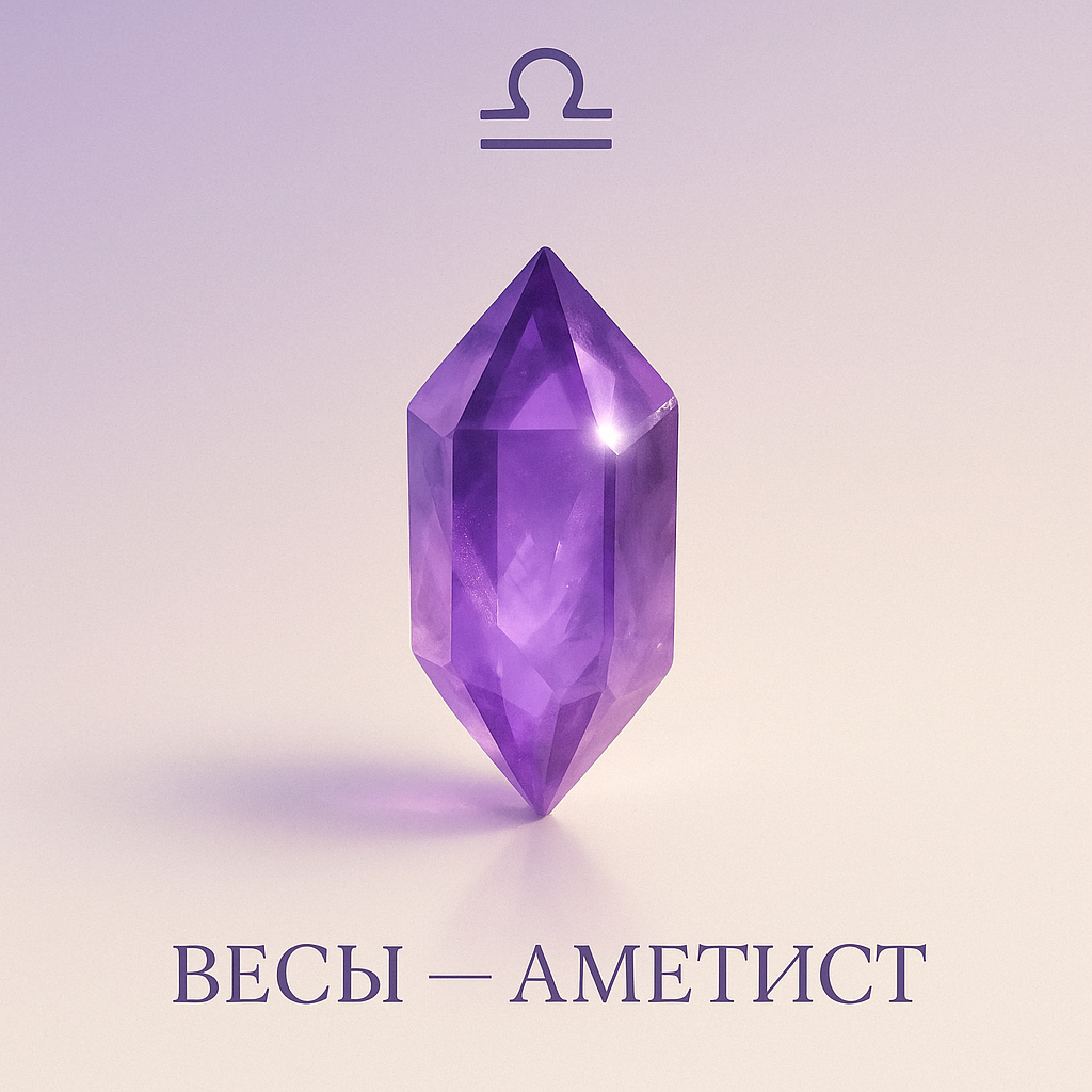 Аметист не убирает чувствительность Весов, наоборот, делает её чище. Он как хрустальный фильтр, через который мир становится мягче, но не теряет яркости. Весы учатся отличать вдохновение от хаоса, эмоцию от зависимости, любовь от страха. И когда эта грань становится видимой, приходит зрелость — тихая, естественная, настоящая.