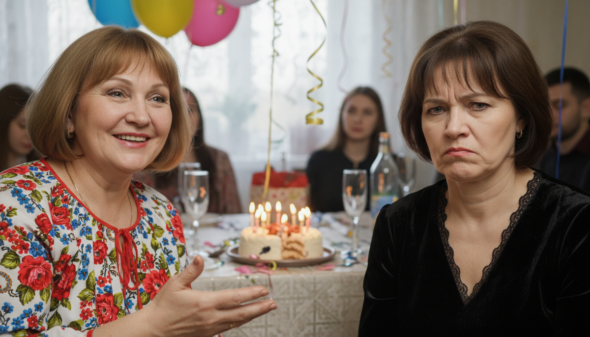 Напротив нее, у другого конца стола, съежилась Людмила Семёновна, сватья. Она сидела на краешке стула, прямая, как жердь, в своем вечном сером костюме, который делал ее похожей на уставшего бухгалтера в конце отчетного периода.