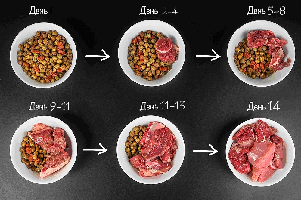 Стандартная схема перевода с сухого корма на натуральную еду: