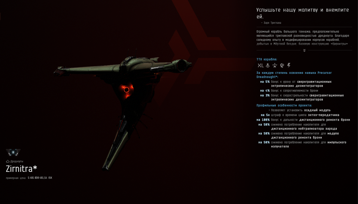 Дредноут Zirnitra относится к ветке кораблей триглавиан.