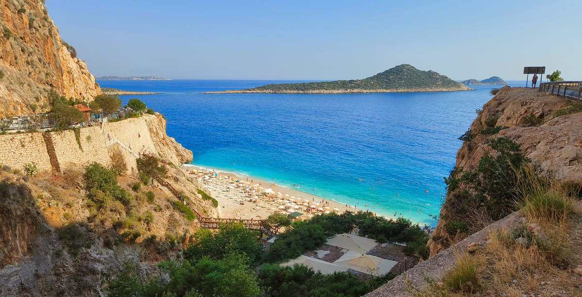 И вот мы дошли до входа. Вход стоит 50 лир. Дальше идет деревянная лестница, которая ведет вниз на пляж. А сам пляж небольшой, но действительно очень красивый. Если Вы прилетели на самолете и отдыхаете в отеле в районе Кемера, то, я считаю, стоит уделить целый день и съездить сюда, желательно на арендованной машине. Вас будет ожидать куча красивых локаций по пути и в самом конце - прекрасный пляж!