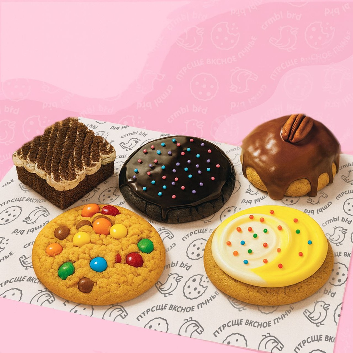 На Крымском валу рядом с Музеоном и зданием Третьяковской галереи на Крымском валу и напротив парка Горького появилось кафе крамблов CrmblBrd. Крамблами тут называют печенье с хрустящей, рассыпчатой структуры. Как песочное тесто, только высшей пробы, с разными начинками. Причем меню меняется каждую неделю. Сегодня пробуем ваниль с соленой карамелью и копченой солью, на следующей неделе крамбл с грушей, сыром дор блю, грецким орехом, а следом с матчей и цитрусовым юдзу. Уверяют, что каждый вкус — ограниченная серия, который больше не повторится.