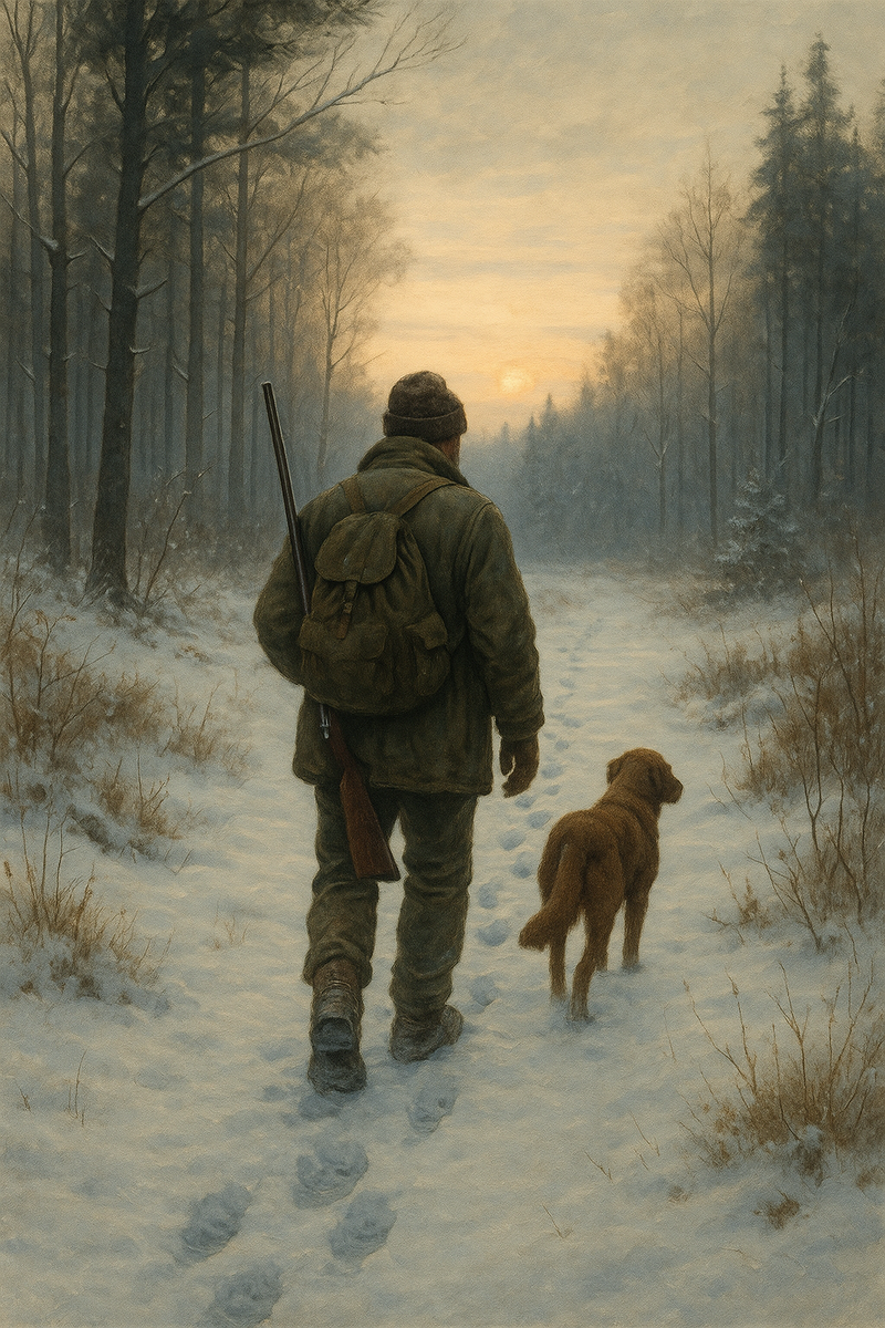 Есть вещи, которые невозможно объяснить словами. Тишина леса, дыхание земли под снегом, шаги по тропе, где давно не ступала нога человека. Охотник, идущий один, не просто ищет добычу. Он ищет самого себя.