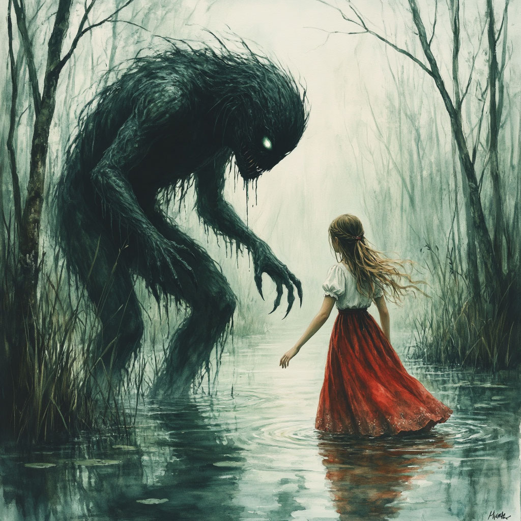Интересно, что в некоторых регионах (например, на Русском Севере) встречается женский вариант хозяина болота — болотница. Её описывают как уродливую женщину с длинными зелёными волосами, похожими на водоросли. В песне женские образы тоже присутствуют — например, символика косы с алой нитью соединяет в себе красоту невесты и орудие жнеца, намекая на жертвенную природу запретной любви.