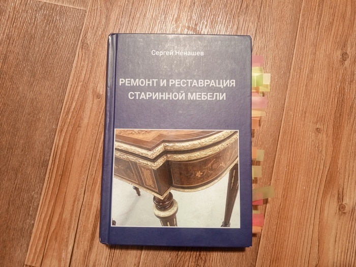 Купил я одну книжку почитать - про реставрацию старинной мебели. Вообще я вышел на нее случайно в поисках другой книги того же автора - про реставрацию деревянных предметов, но ее не было в наличии. Сергей Ненашев. Ремонт и реставрация старинной мебели. М. Юстицинформ 2024. 488 стр На авито ее продает сам автор, поэтому я попросил ее подписать для меня, для таких книг у меня отдельное место на полке. А купил я ее прокачать свои знания по реставрации - я хоть и активныйучастник Том Сойер Феста, делаю виртуальный музей, пилю уже несколько лет ретропонедельники на пикабу, все равно стремлюсь повышать свою квалификацию. И мне было интересно сравнить как мои знания и опыт любительской реставрации бьются с техниками профессиональной музейной реставрации. В целом эта книга как раз раписана для тех, кто делает первые шаги в любительской реставрации - восстановить старый семейный комодик, дать вторую жизнь отцовской радиоле, покрытой шпонированными панелями и т.д. Меня это очень радует, что вещ