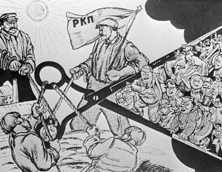 То есть фактически 9 лет рабочий находился под пятой жесткой диктатуры владельцев продовольствия, которые беззастенчиво морили его самого голодом, убивали голодом его детей, грабили его скудное имущество. 1917 год был в значительной степени восстанием рабочего против этой жесткой диктатуры, державшей его за горло, и верхушку диктаторов - крупных хлебных спекулянтов, ему относительно легко удалось смести. Но мелкий клоп в лице кулака, середняка и вкупе с ними и бедняка, всё равно держал его за горло, и грабил, грабил, грабил, наживался на его страданиях. За кулек дряной крупы выносил из дома его кровати, посуду, одежду, все, что только имело какую-то ценность. Объем ценностей, которые утекли с 1914 года из города в деревню по грабительским "ножницам цен" в пользу крестьянина, учету вряд ли поддается. Но по рассказам деда, даже после того, как через Прохоровский район Белгородской области прокатился фронт Великой Отечественной, оккупация, Курская битва, по деревням все равно находили массу дореволюционных культурных и музейных ценностей из числа предметов явно не деревенского быта. За 9 лет обнищания городского пролетария российская деревня награбила очень прилично. И это только через "ножницы цен". А то, что награбило крестьянство в ходе "чапанных восстаний", участия в бандах всяких атаманов Зеленых, Махно, Марусек и частным порядком с обрезом в кустах - это уже довеском к "ножницам цен". Из общей массы деревни только относительно небольшая часть даже бедняков была против беззастенчивой наживы на городе, а остальные были целиком и всеми руками и ногами за свободную торговлю. Продовольственную диктатуру в виде продразверстки (которая составила в разных регионах от 15 до 50% питания городских рабочих) сумели удержать в основном лишь благодаря... белым армиям, которые были слишком тупы и не дисциплинированы, чтобы не заниматься прямо и открыто, "не отходя от кассы" реституциями помещичьей собственности, массовыми порками и грабежами и очень быстро доказали крестьянам, что лучше продразверстка, чем рыцари белого дела. Ну, и благодаря внутренним противоречиям российской деревни, в которой даже при почти единодушном одобрямсе выгодных "ножниц цен", ложиться под кулака никто не хотел, на чем большевикам и удалось сыграть.