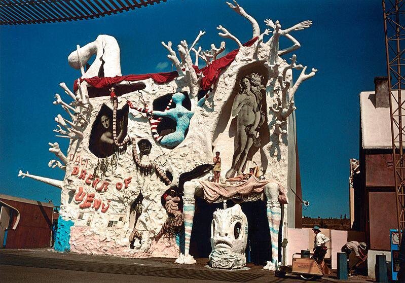 В 1939 году в Нью-Йорке прошла легендарная всемирная выставка — и среди павильонов «Мира завтрашнего дня» резко выделился один: сюрреалистический, провокационный, вызывающий. Сальвадор Дали пригласили создать собственный павильон — Dream of Venus ( «Мечта Венеры»). Он буквально выбивался из общей темы рационального будущего. Посетители заходили в павильон через гигантские женские ноги — символический портал в чужой, фантастический мир. Фасад напоминал песчаный замок с «выдающимися» частями тела и странностью: кактусы-опоры, грибовидные формы, причудливые выступы.