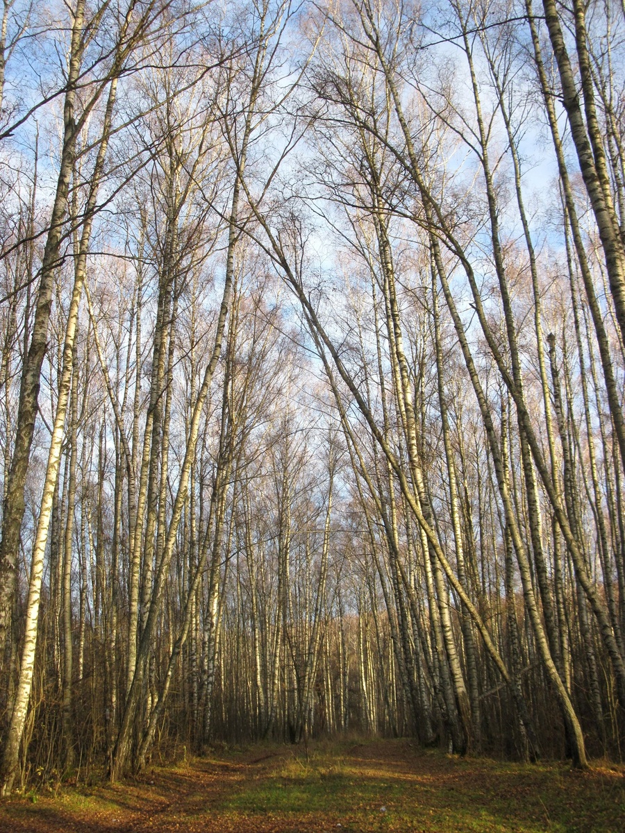 Березовая роща около Ефимьево солнечным ноябрьским днем