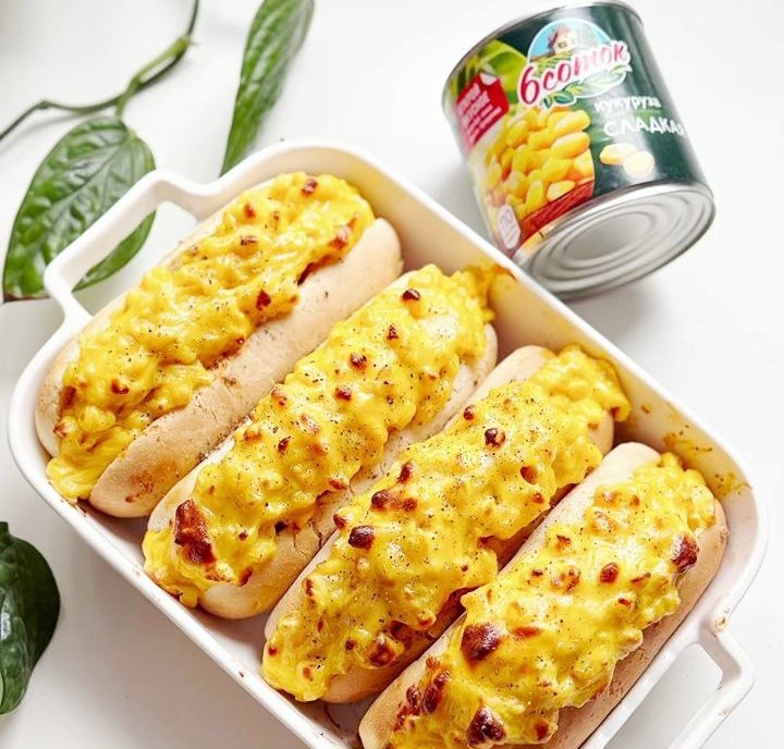 Хотите превратить обычный хот-дог в настоящий кулинарный шедевр? 😉Сочная сосиска, пикантный соус и, конечно, главная изюминка — шапка из тянущегося сыра и сладкой кукурузы «6 соток»! •Булочки для хот-догов - 4 шт.
