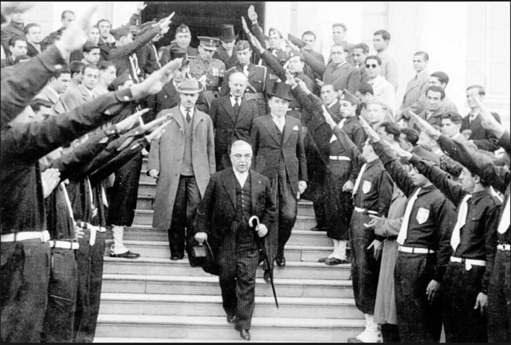 Греческие ультраправые прошли на военном параде в день «Охи» 28 октября в Салониках. Члены организации «Греческая православная молодёжь (Ελληνική Ορθόδοξη Νεολαία ΕΟΝ), восхваляющие фашиста Метаксаса, прошли маршем, выкрикивая лозунги про Македонию, Северный Эпир и Кипр. Ведущий на телеканале начал что-то говорить, когда националисты скандировали лозунги. Премьер Мицотакис похлопал им. ЕОН считали фашистской организацией и ее участие в военном параде вызвало бурную реакцию. Организация у себя на странице называет диктатора Метаксаса «нашим национальным лидером и вечным образцом для подражания нашей молодёжи». И не стоит считать считать этих клоунов безобидной организацией и недооценивать. Однако они почему то оказались в фаворе у Мицотакиса. При этом других правых, он яростно гнобит. На фото Метаксас со своими сторонниками, отдающими фашистское приветствие В этом посте есть большое видео, которое не загрузилось в Дзен. Откройте оригинал поста в телеграме, чтобы его посмотреть