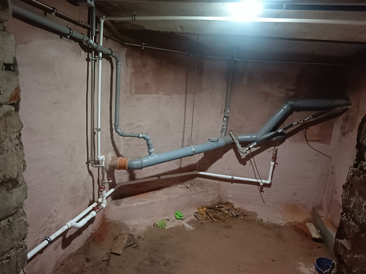 Отопление. Как и обещал в прошлой публикации фото нового розлива, фото старого розлива к сожалению не сохранились, но это и не важно, розлив переделан на ппр трубу с подключением стояков из нержавеющей стали, старый розлив был отрезан у самой стены, с двух противоположных сторон, были установлены пресс соединения с переходом на резьбу, краны, тройник с краном для слива и подсоединён новый розлив. Здесь на фото Вы можете видеть нержавеющие трубы, помимо труб отопления здесь я проложил трубы водопровода тоже из нержавейки, позже расскажу про эту работу, конечно же с фото)