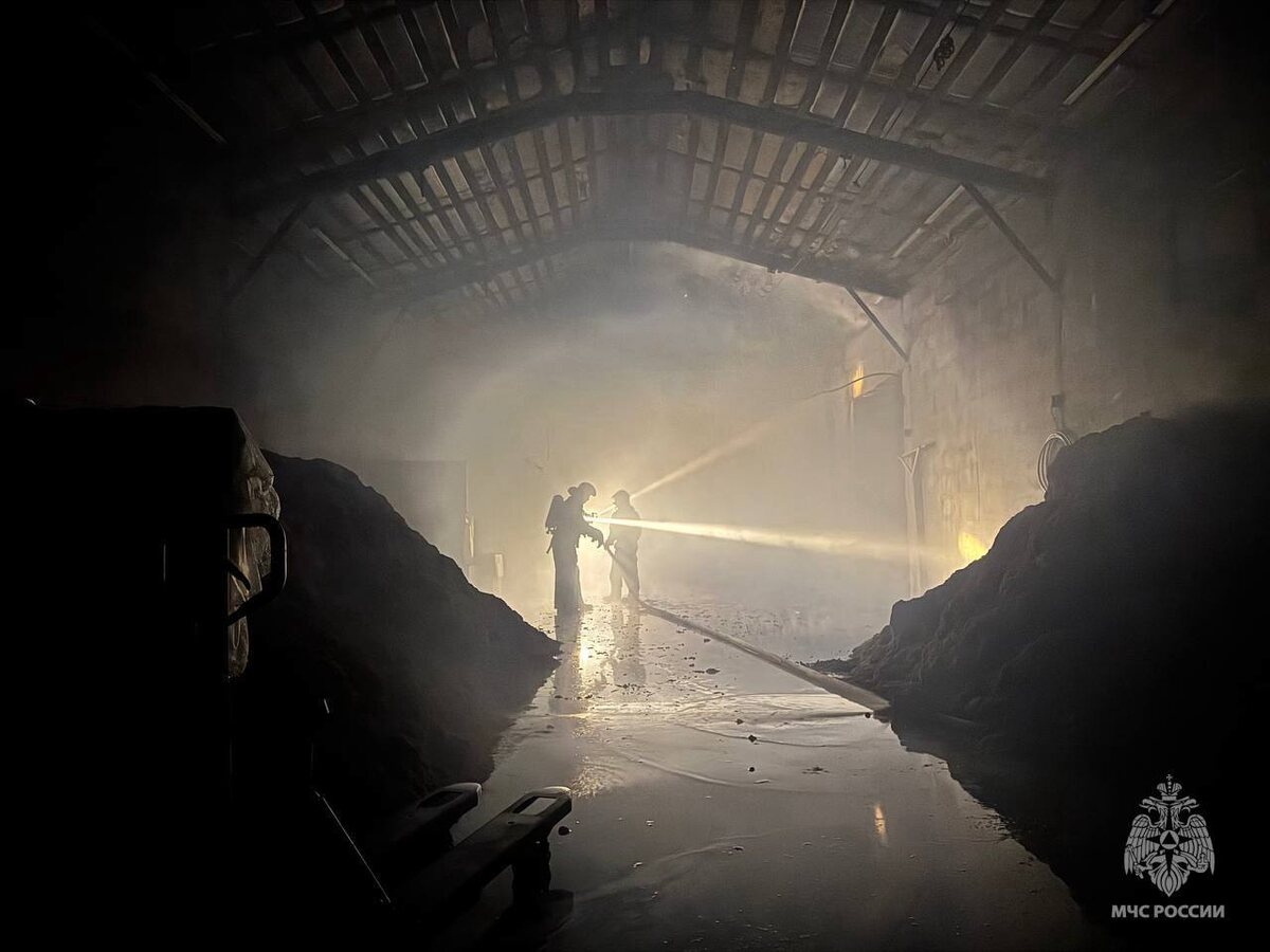 В Твери огнеборцы МЧС Тверской области ликвидируют пожар на территории пилорамы на Промышленном проезде