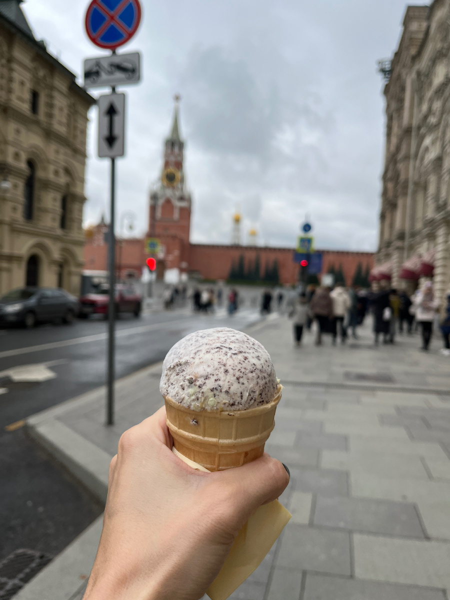В ГУМе купили знаменитое мороженое. Причем в нескольких ларьках нам сказали, что принимают только наличку, а потом мы нашли, где можно картой 🤔