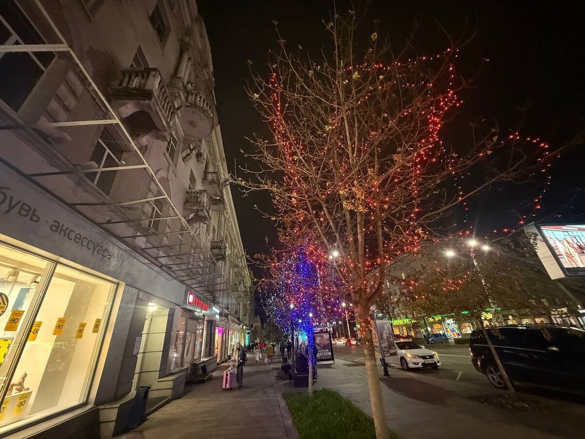 В Ростове уже начали украшать главные улицы города к Новому году 🎄 Но пока инициатива исходит от владельцев коммерческих заведений. На Большой Садовой на деревьях появились гирлянды. В администрации города обещают украсить город к главному празднику года до 10 декабря.