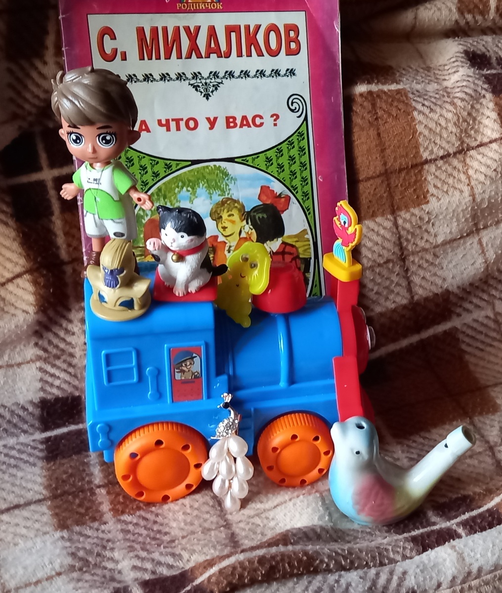 Здравствуйте, дорогие друзья! Ура! Ура! Ура! Мой фотопроект "Литературные куклы" снова здесь. Напомню, что цели этого фотопроекта - вызвать интерес к старым добрым бумажным книгам. А ещё вспомнить любимые книги моего детства и юности и книги, которые читали мои родители, когда они сами были ещё маленькими или когда им было столько же лет, сколько мне сейчас. А также поведать посетителям этой странички о книгах, которые они, возможно, ещё не читали. И напомнить им о книгах, которые они читали в дошкольные и школьные годы. И вдохновить на "кукло-творчество". В проекте сегодня - снова сборник стихов Сергея Михалкова "А что у вас?", напечатанный в издательстве "Родничок" в 1999 г. Напомню, что я уже писала об этой книжке здесь: А сегодня в проекте - куклы, изображающие героев других стихов из этой книги. Например, "Песенки друзей: "...Красота! Красота! Мы везём с собой кота, Чижика, собаку, Петьку-забияку, Обезьяну, попугая - Вот компания какая!..." В роли "транспорта" - паров